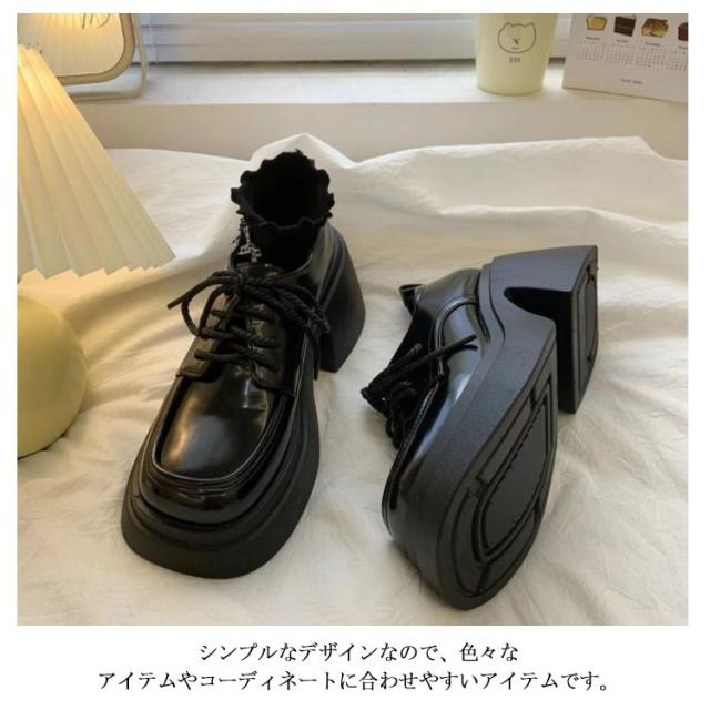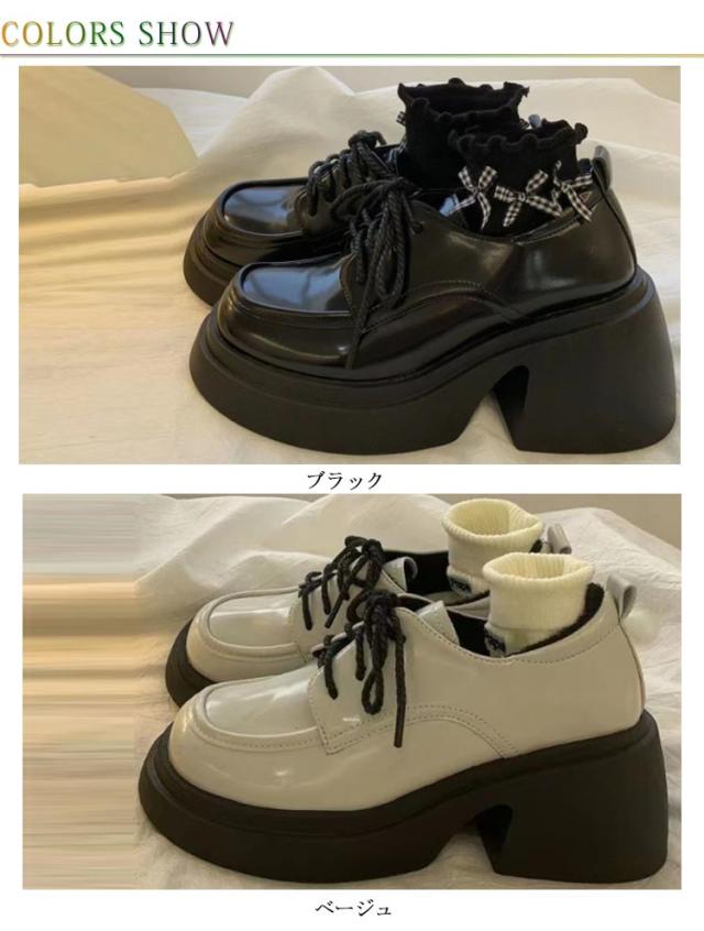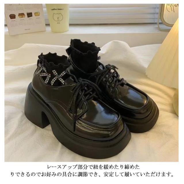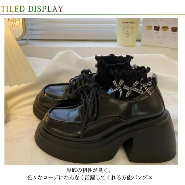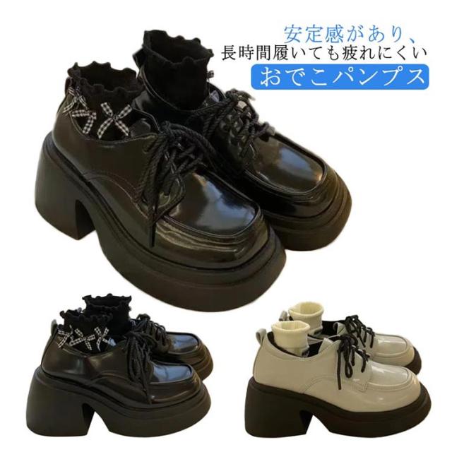 パンプス レディース 靴 厚底 ジュース おでこパンプス 大きいサイズ メリージェーン ヒールスニーカー 厚底ブーツ 美脚 コスプレ ロリータ 太ヒール レースアップ 歩きやすい 黒 ブラック量産型 地雷系 参戦服 疲れにくい 歩きやすい 原宿 送料無料