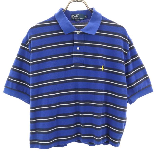 ポロバイラルフローレン ボーダー柄 半袖 ショート丈 ポロシャツ L ブルー Polo by Ralph Lauren 鹿の子 レディース