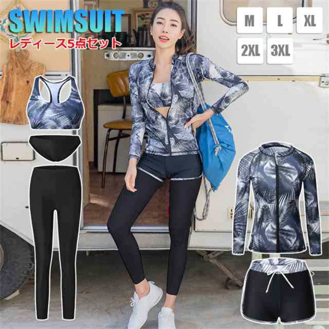 送料無料 水着 レディース 体型カバー セット セパレート フィットネス 水着 5点セット 大人水着 プール オールインワン 長袖 フィットネ