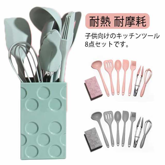 | 子供向けのキッチンツール8点セットです。 料理好きなお子様に最高のプレゼントです。 高品質な食品級シリコン製で、柔らかくて鍋などに傷をつけることを心配する必要がありません。 変形・変色もしにくく、デザイン性と機能性が兼ね備えたキッチンツールです。 耐熱温度は-40℃?230℃になります。汚れても水洗い出来ることでお手入れがとても簡単です。 専用の収納ケースが付属しておりますので、一気に収納! 底部底面には通気のための穴が開いていて、いつでも清潔に保ちます。 | |
