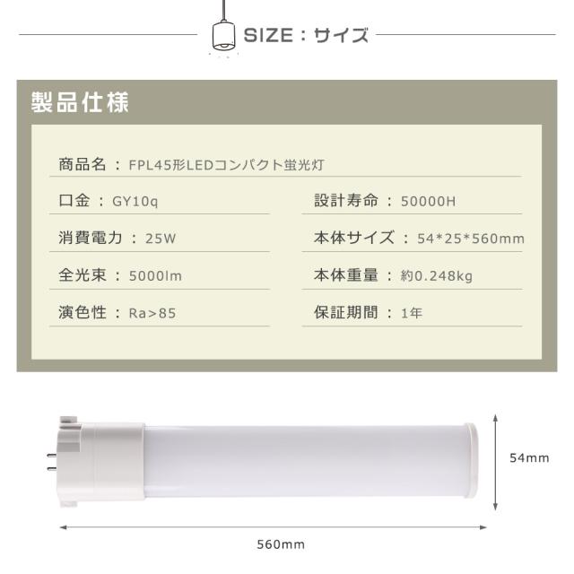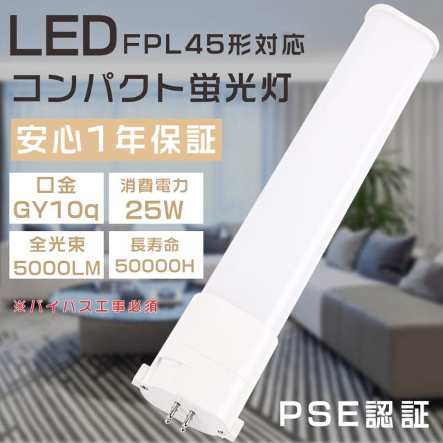 LED蛍光灯 LEDコンパクト蛍光灯 FPL45ELHF 電球色3000K FPL45W形対応 ツイン1蛍光灯 45形 FPL45型 代替用LED蛍光灯 LEDランプ LEDツイン蛍光灯 LEDライト FPL型交換 口金GY10q 消費電力25W 全光束5000LM LED電球 LED化 LED照明器具 家庭照明 店舗照明 1年保証 配線工事必須