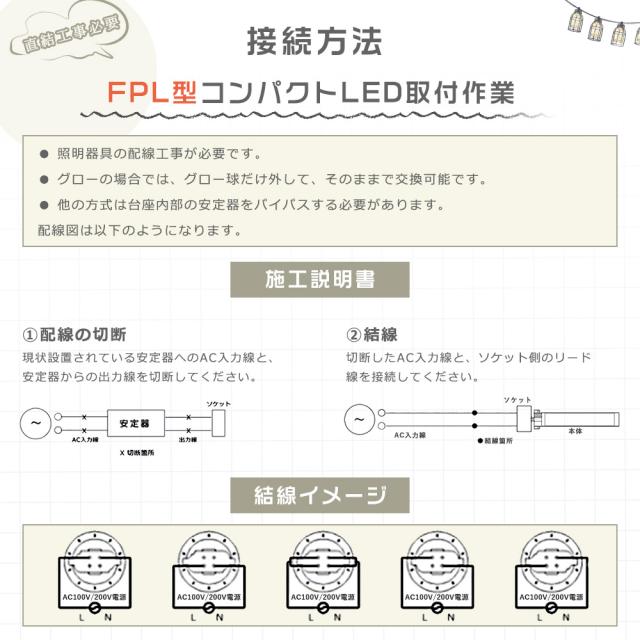 ★グロー式以外(インバーター式、ラピッド式、電気スタンドなど):配線工事が必要です。安定器を取外しAC電源と直結してください。工事は専門業者とご相談ください。