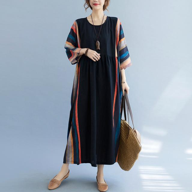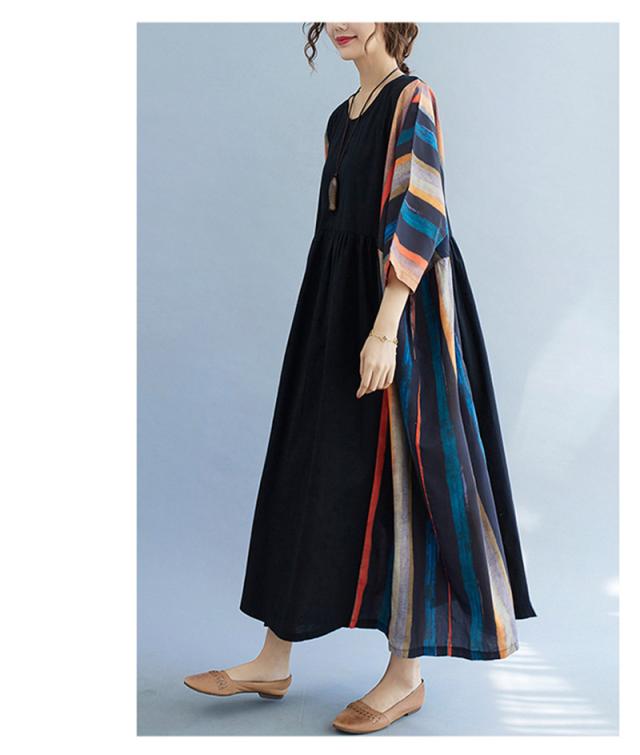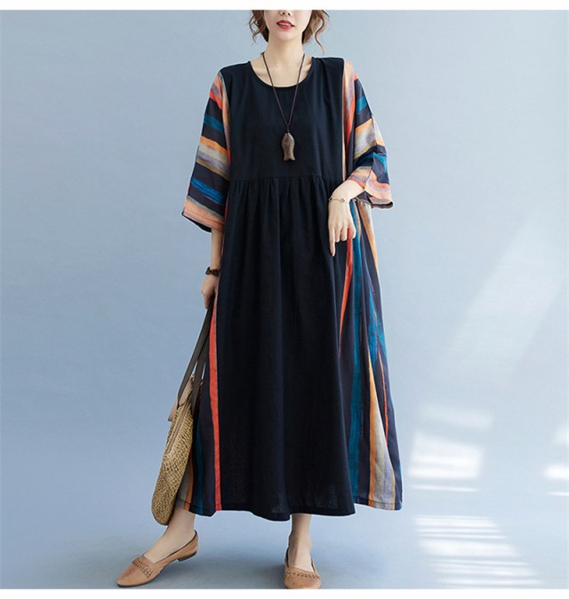 今だけ値下げ ワンピース レディース ロング丈 トップス ドッキングワンピ 長袖 A字 夏 切り替え 婦人服 ゆったり 大きいサイズ オーバーサイ