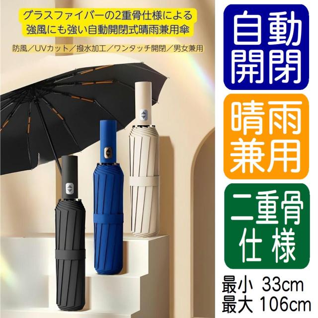 自動開閉UVカット晴雨兼用折り畳み傘24骨 折りたたみ傘 24本骨 ワンタッチ開閉 自動開閉 軽量 コンパクト 晴雨兼用 UVカット 大きめ 直径106cm 丈夫な傘 ワンタッチオープン ワンタッチクローズ