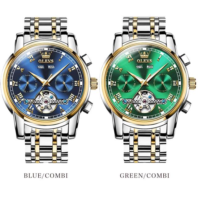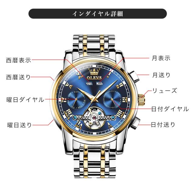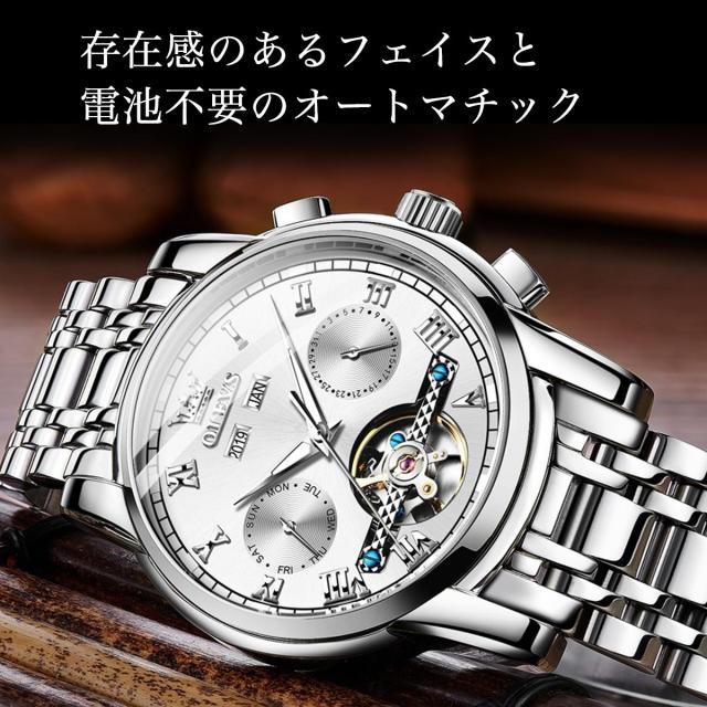腕時計 メンズ OLEVS オレブス オレヴス メンズ腕時計 ブランド 自動巻き 機械式 手巻き クロノグラフ 多機能 防水 スケルトン 高級感 ギフト 誕生日 プレゼント 安い デザインウォッチ 時計 クロノ 男性用 シンプル おしゃれ ビジネス カジュアル