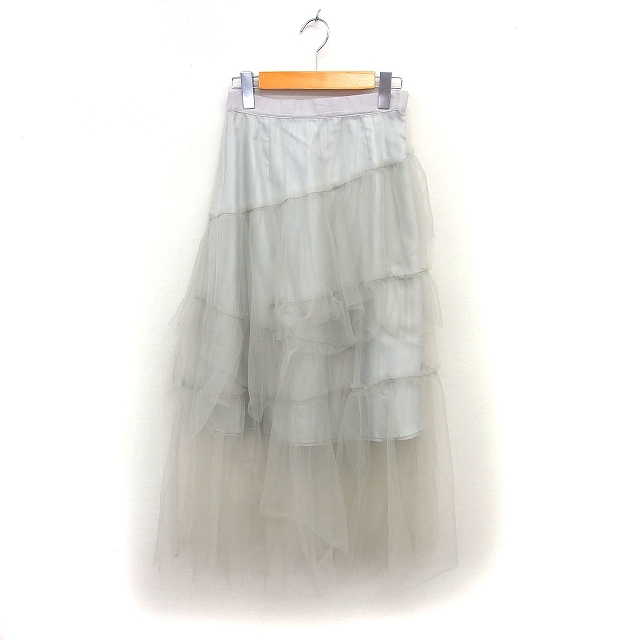 【中古】レディアゼル REDYAZEL チュール ティアード スカート フレア マキシ ロング サイドジップ M グレー /NT28