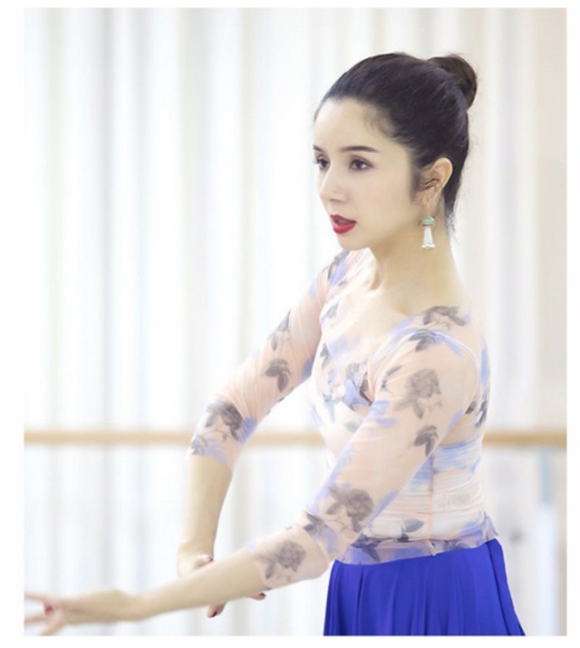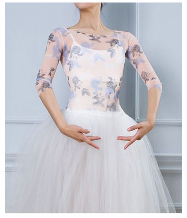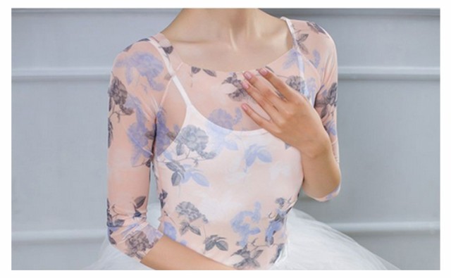 バレエ トップス 大人 花柄 ボートネック メッシュ バレエトップス レディース シアートップス 七分袖 シースルー トップス 透け感 ダンス レッスン 練習着 ストレッチ ダンス衣装 レイヤードトップス メロウ 20代 30代 40代
