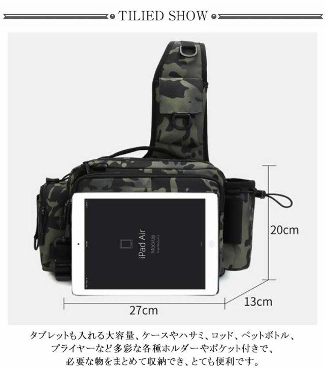 大容量 ワンショルダーバッグ ウェストバッグ ルアーエギングバッグ 多機能 フィッシングバッグ ロッドホルダー ドリンクホルダー フィッシングバッグ 釣りバッグ