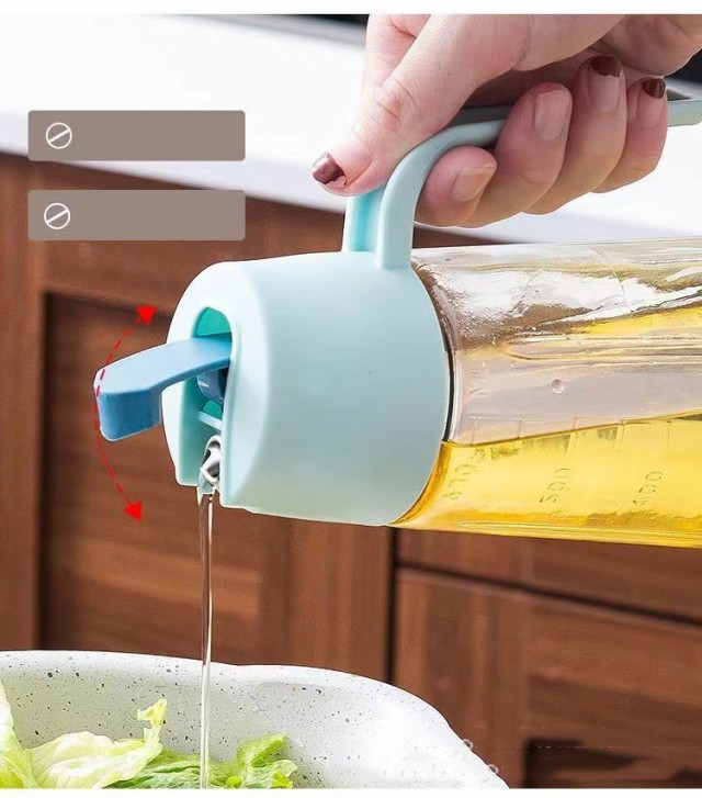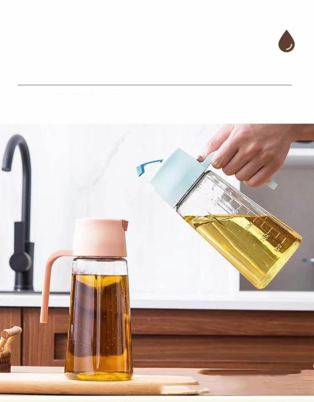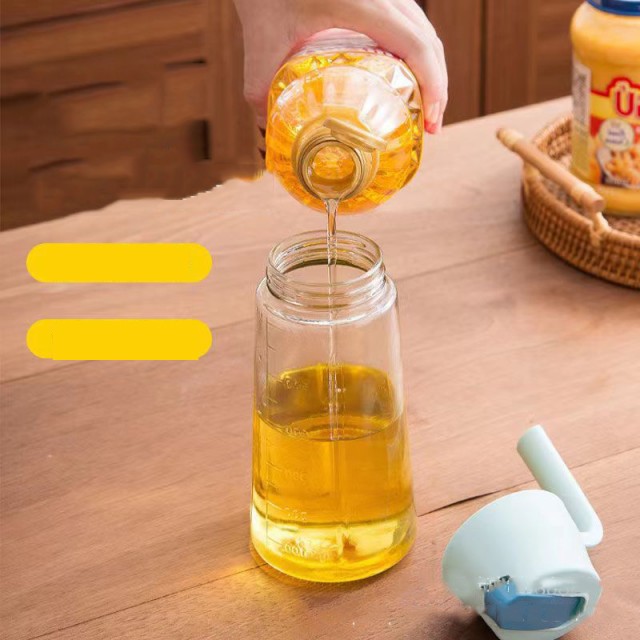 2本セット オイルボトル 630ml 自動開閉 液だれしない 目盛り付 漏れ防止 ガラス オイルポット 油差し ビネガーボトル 大容量 おしゃれ