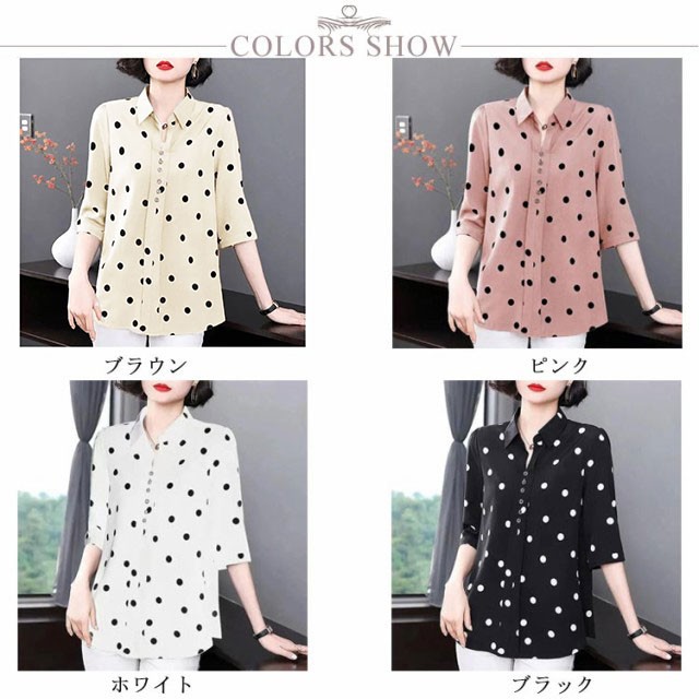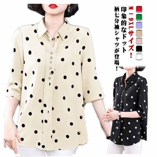 M?9XL!ドット柄 トップス ブラウス レディース シャツ ドット柄シャツ 送料無料 七分袖 とろみシャツ 母の日 水玉 7分袖シャツ 大きさいz 10L 9L 8L 夏服 夏物 30代 40代 50代 ママ 母 OL