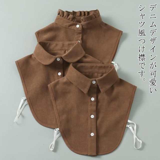 | デニムデザインが可愛いシャツ風つけ襟です。 レイヤードしているかのように見えるシャツ風付け襟 着ぶくれせずにスッキリと重ね着風コーデを楽しめます◎ ニット、トレーナー、スウェット、Tシャツ、ワンピースなどの下に着てトレンドの重ね着スタイル完成 | |
