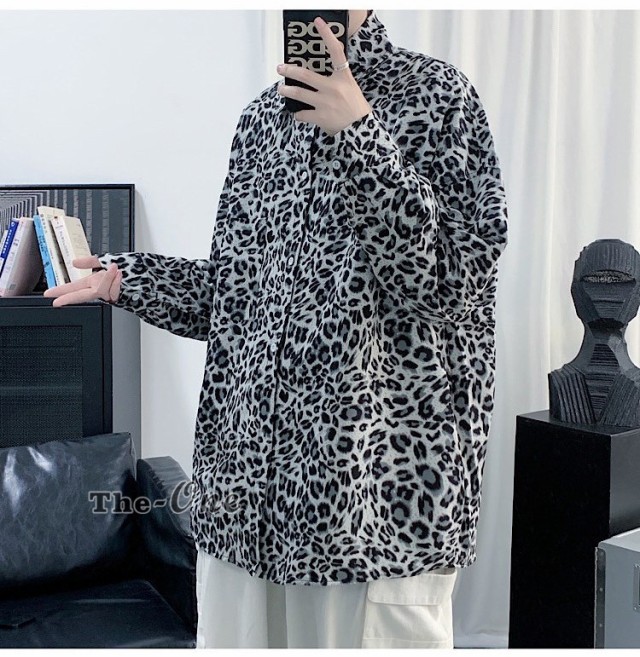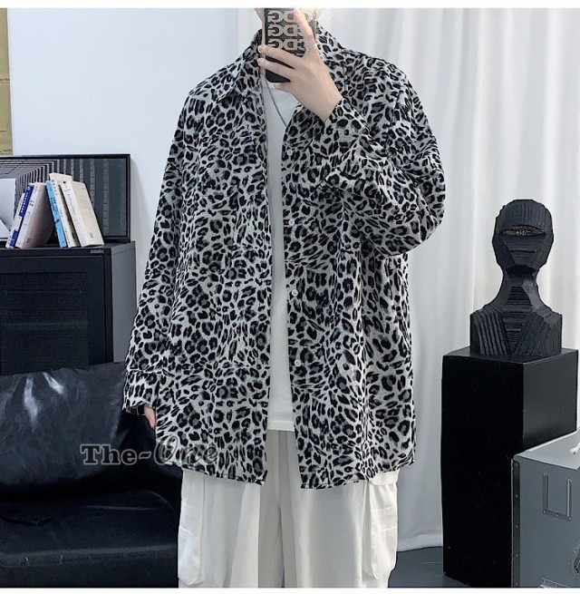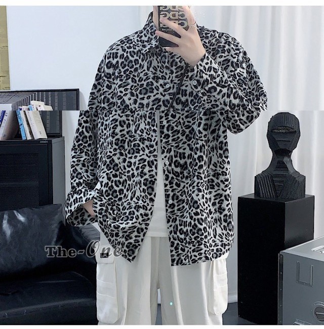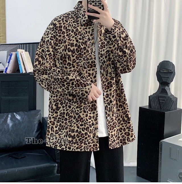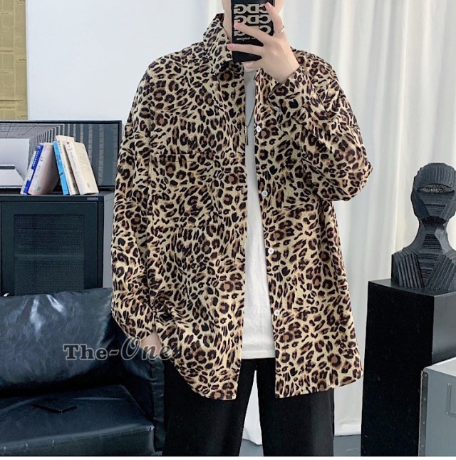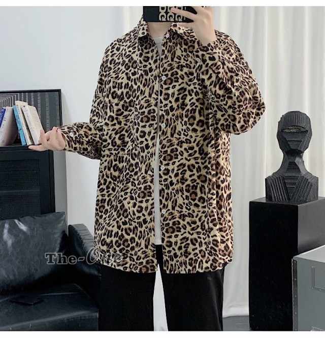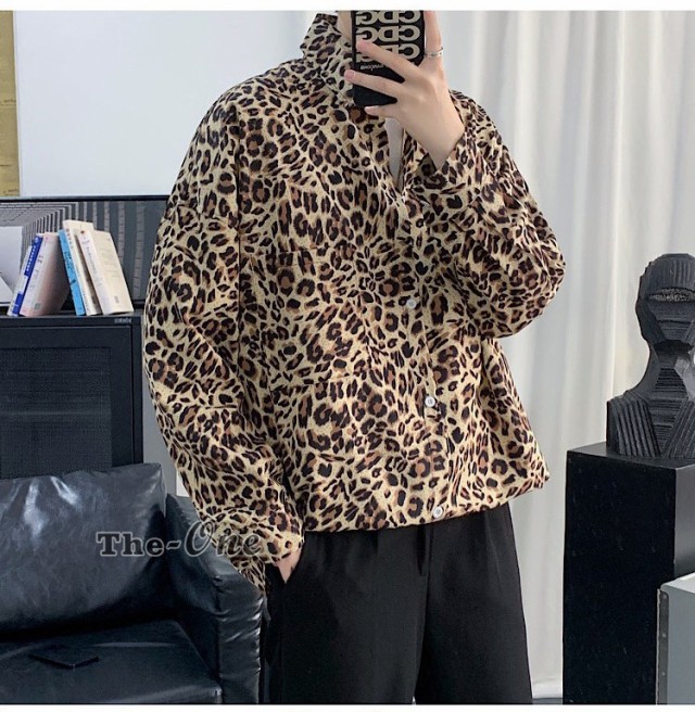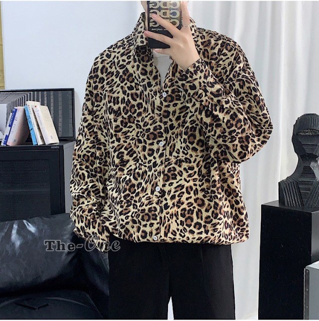 カジュアルシャツ 総柄シャツ 長袖シャツ カジュアルシャツ ヒョウ柄 アニマル柄 韓国ファッション 春服