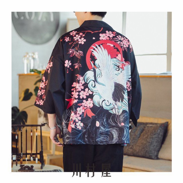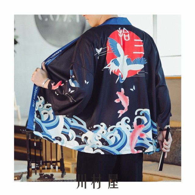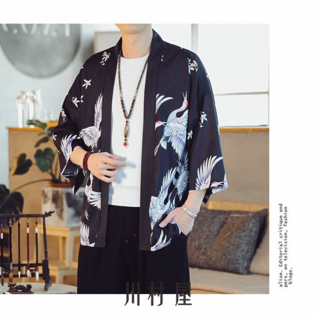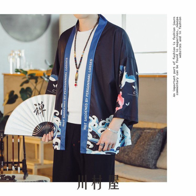 羽織 メンズ 夏服 男性用甚平 五分袖 和風 はおり カーディガン 浴衣風 七分袖 着物 父の日