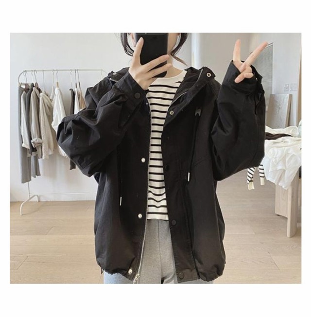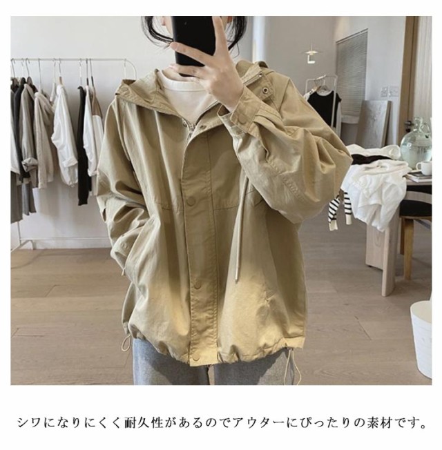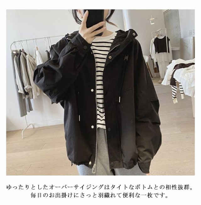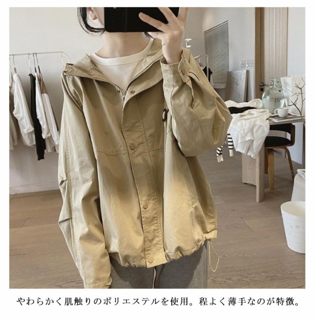 マウンテンパーカー レディース ブルゾン ジャケット 春 秋 アウター パーカー ライトアウター モッズコート スプリングコート 羽織り カジュアルオーバーサイズ ゆったり 大きいサイズ 大人 軽い 防寒 体型カバー アウトドア