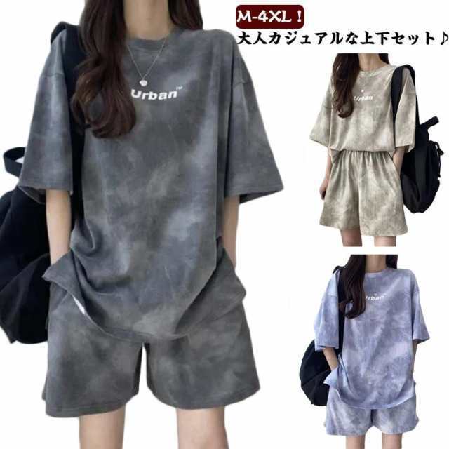 夏 可愛い 半袖 薄手 レディース スウェット 上下セット ルームウェア Tシャツ 半袖 セットアップ ジャージ プリント tシャツ ハーフパンツ 2点セット ルームウェア 部屋着 染め ゆったり 大きいサイズ スポーツウェア 運動着 韓国ファッション カジュアル