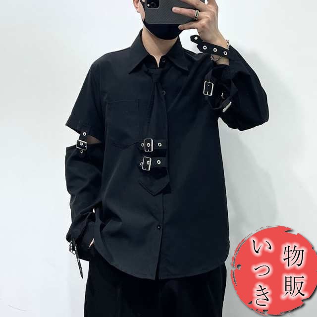 メンズ長袖シャツパンクロックヴィジュアル系v系暗黒系バイカー春夏秋大きいサイズおしゃれロングシャル