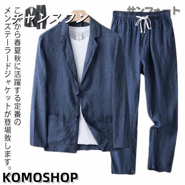 セットアップ 綿麻 上下セット サマージャケット セットアップ メンズ 麻 テーラードジャケット 春 長ズボン