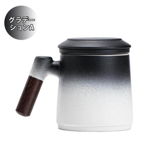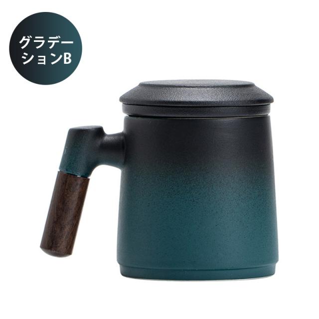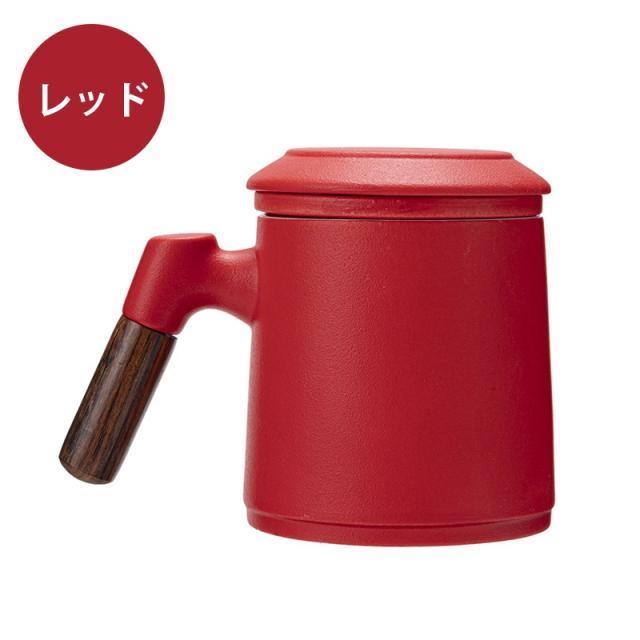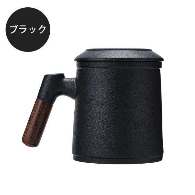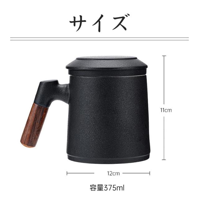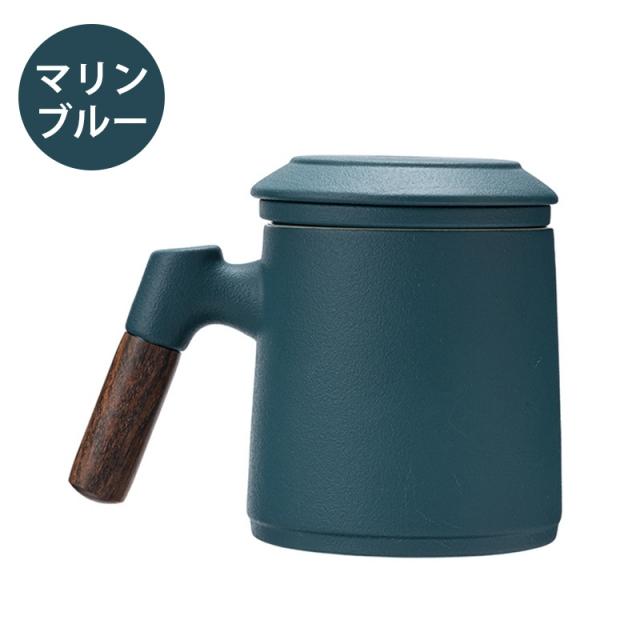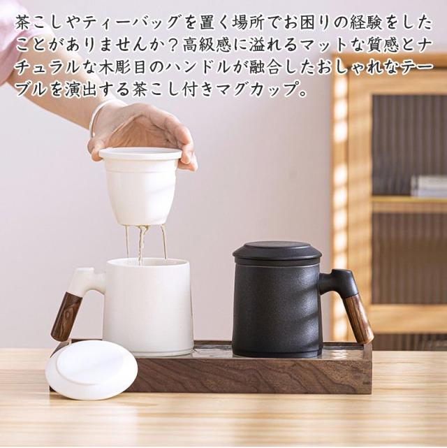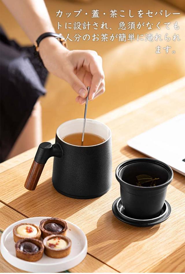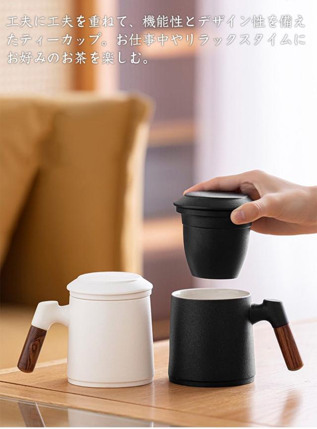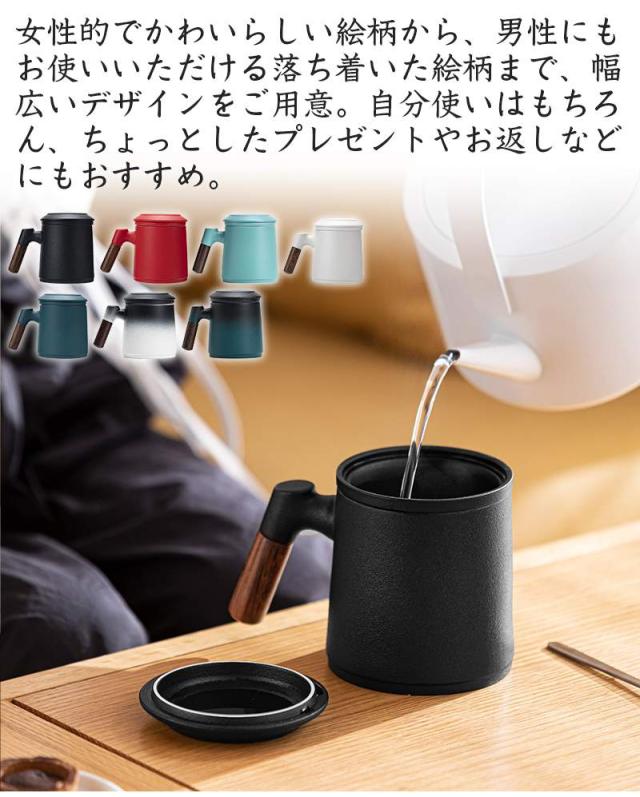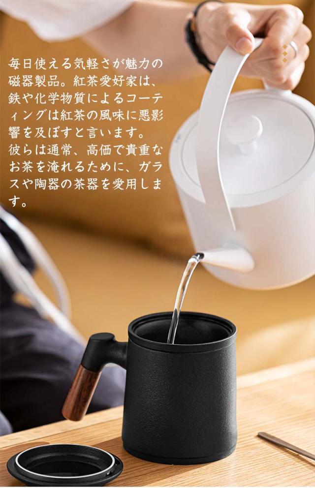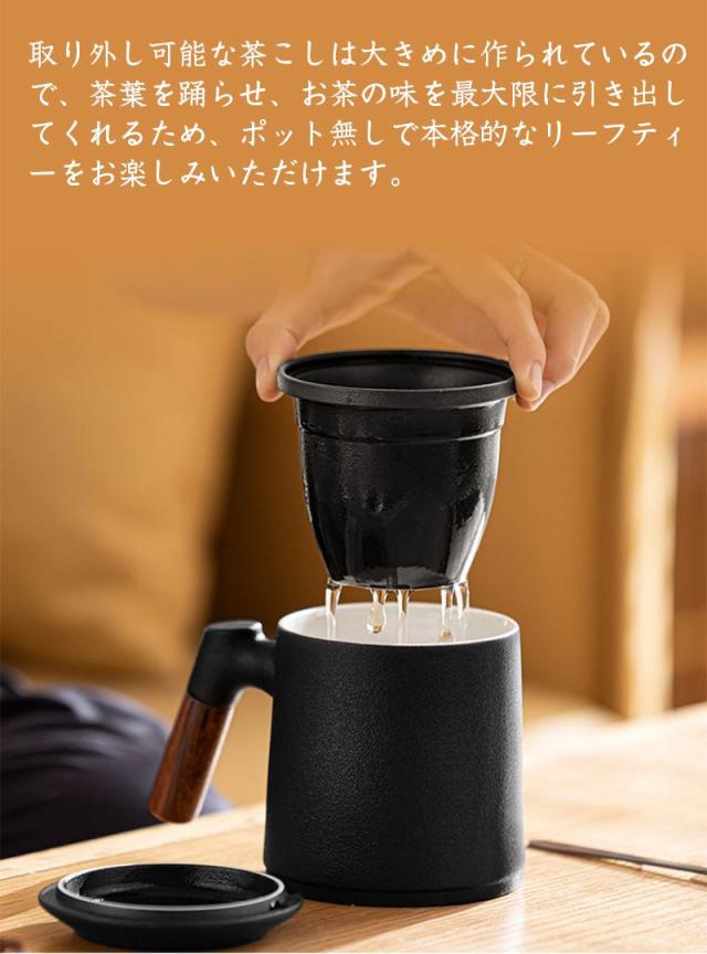 陶製の茶こしと蓋が付いて、マグがポットの代わりになって簡単においしいお茶が入ります。