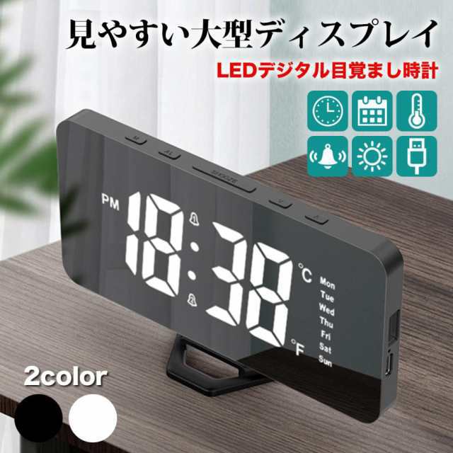 置き時計 LED デジタル 目覚まし時計 アラーム スヌーズ USB充電式 曜日 おしゃれ 置時計 クロック 卓上 デジタル時計 めざまし時計 シンプル 鏡面 ミラー