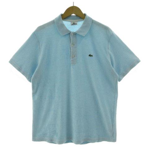 【中古】ラコステ LACOSTE ポロシャツ ロゴワッペン パイル生地 半袖 日本製 コットン混 ブルー系 水色 4 メンズ