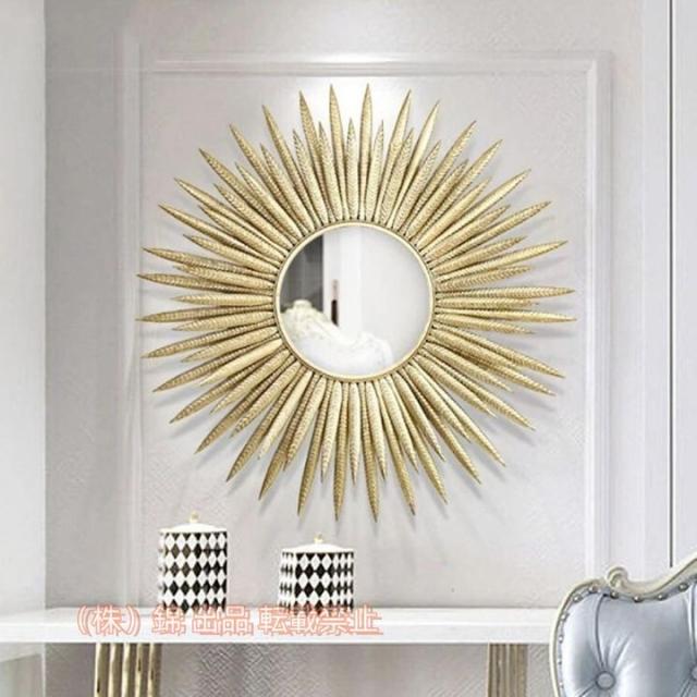 鏡 ミラー フェザーサン 羽根 太陽 70cm 高級 ホテル ゴールドフレーム おしゃれ 壁掛けミラー 壁掛け おしゃれ 株式会社錦デザインミラー シンプル オシャレ