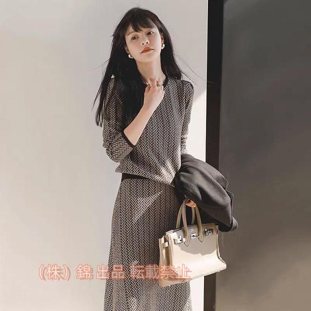 ニットセットアップレディース40代秋冬長袖ニットトップスタイトスカートセットアップオシャレワンピース着痩せ上品通勤株式会社錦入学式卒業式30代