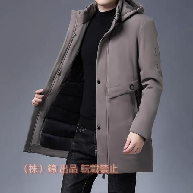 ジャケットメンズ中綿ミディアムロングフード付きおしゃれコート男性20代30代40代無地厚手2023ファッション株式会社錦高級アウターダウンジャケット