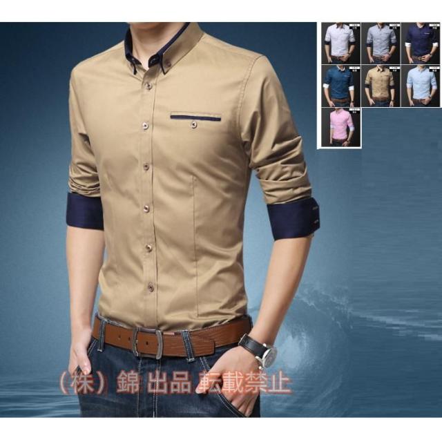 ワイシャツ メンズ ビジネスシャツ 長袖シャツ 細身 無地 形態安定 ビジネス スリムフィット トップス 株式会社錦 開襟シャツ フォーマル 就職祝い