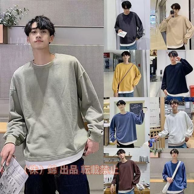 ロングT メンズ Tシャツ 長袖 秋物 フェイク 切り替え レイヤード 重ね着風 20代30代 無地 株式会社錦 トレーナー カットソー 通学通勤 40代50代 カジュアル