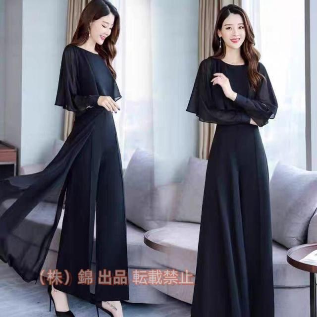 パンツドレス 結婚式 お呼ばれドレス 黒 パーティードレス セットアップ フォーマル シフォン ワイドパンツ 株式会社錦上品 大きいサイズ 3l