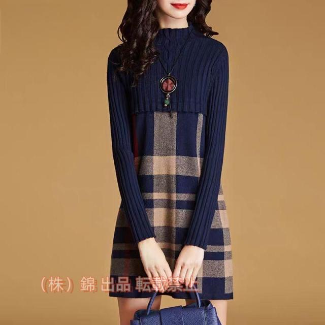 ワンピース ニットワンピース レディース チェック柄 切り替え 秋冬 きれいめ 長袖 錦 タイトミニ ニットセーター 結婚式 ドレス 通勤 着痩せ オシャレ