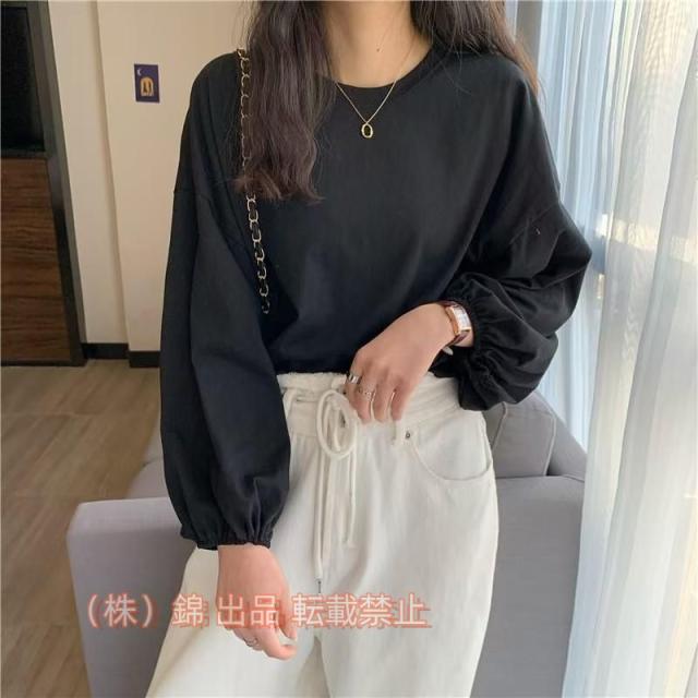Tシャツ カットソー レディース 長袖 無地 トップス ゆったり 体型カバー 可愛い バルーンスリーブ 春秋 株式会社錦 ファッション おしゃれ