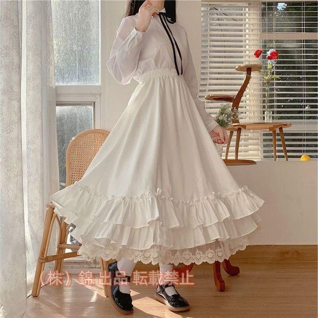 スカート ロリータ風 ロング 点セット 森ガール フリル 可愛い フェミニン ガーリー レース かわいい ふんわり 株式会社錦ホワイト ブラック