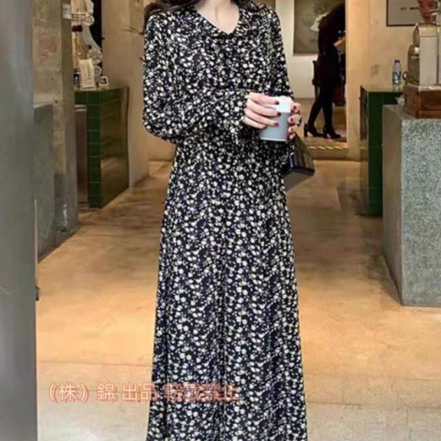 花柄ワンピース 50代 40代 30代 秋冬 長袖ワンピース レディース 春夏 ロングワンピース マキシ きれいめ 着痩せ 韓国風 株式会社錦 おしゃれ フレアスカート