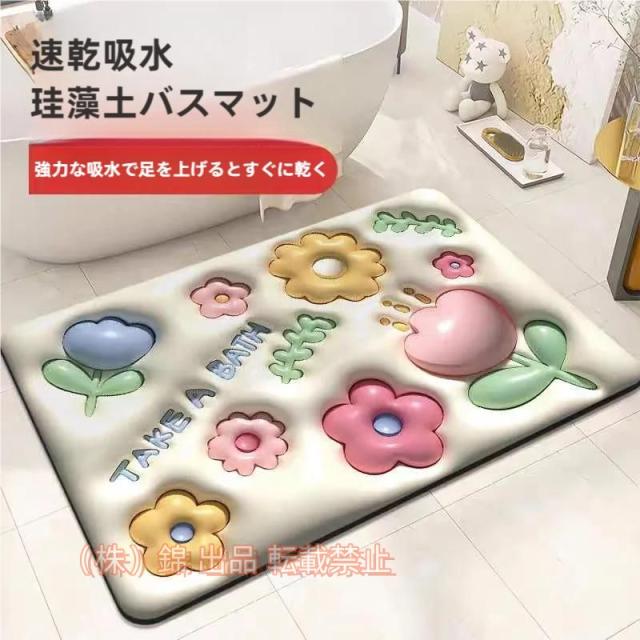 バスマット3d立体花柄お風呂マット珪藻土マット洗面所マット玄関マット裸眼膨張効果滑り止め超吸水速乾性株式会社錦低反発柔くて快適洗えるお手入れ簡単可愛