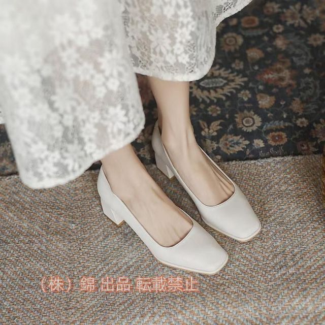 4cmヒールスクエアトゥパンプスレディース太ヒールスムース調小さいサイズ黒5センチ上品歩きやすいチャンキーヒール株式会社錦パンプス冠婚葬祭結婚式