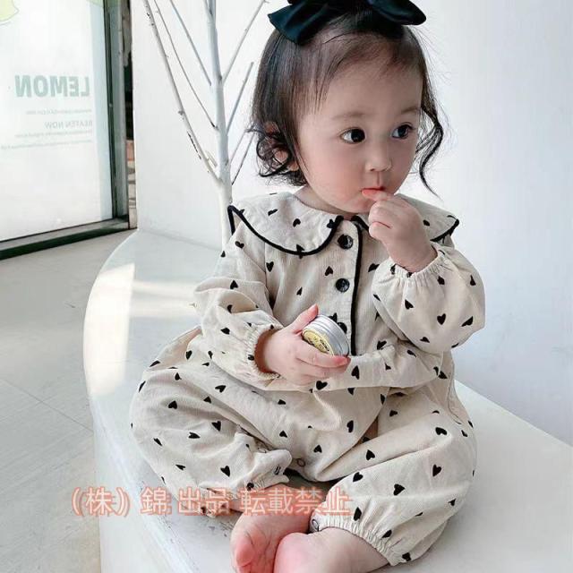 新生児ロンパースベビー服女の子前開きロンパースカバーオールキッズ服子供服赤ちゃん幼児ベビー株式会社錦半袖コットン重ね着重ね着風前開きリボンフリ