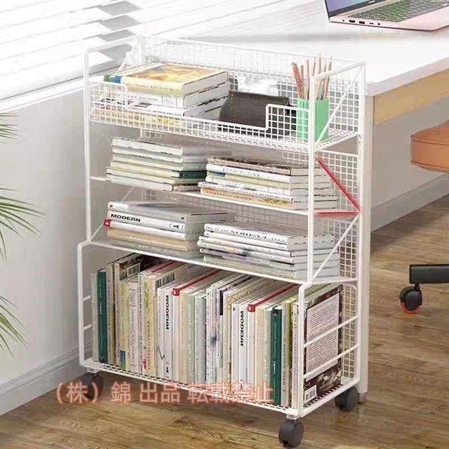 本棚 キャスター付き 4段 ブックシェルフ 収納棚 大容量 デスクサイド本棚 簡単な組み立て 高さ65cm コミック株式会社錦 絵本 雑誌 教科書 学校/オフィス用