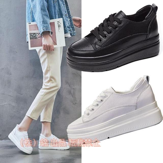 インヒールスニーカースニーカーレディースハイカットインヒール厚底6cmレースアップ黒白厚底スニーカー株式会社錦インヒールレースアップ靴シューズ