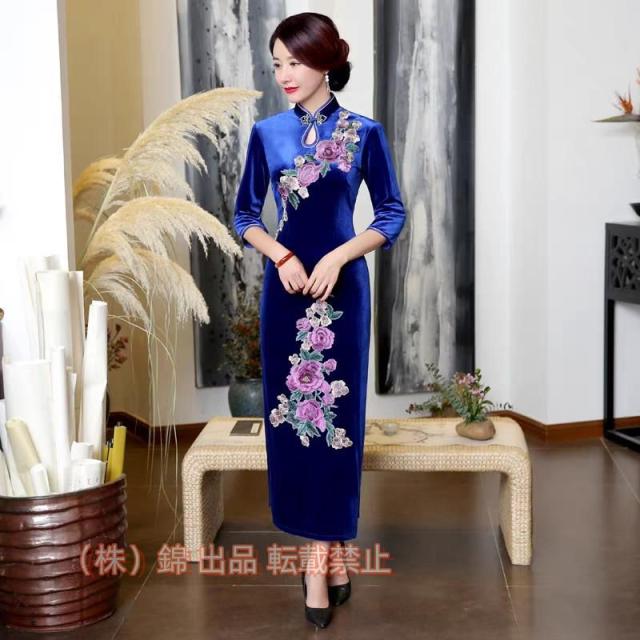 チャイナドレス風 ワンピース チャイナドレス ロング ドレス 結婚式 パーティードレス 冬 パーティードレス 袖あり 株式会社錦チャイナ服 チャイナドレス 結婚式