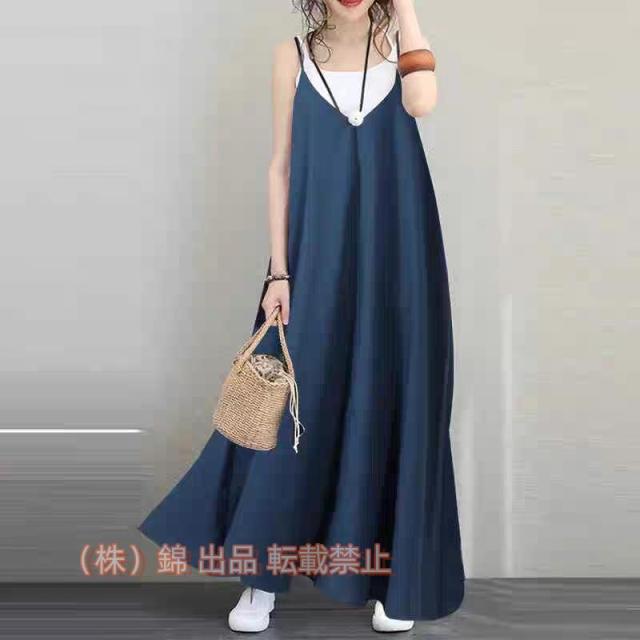 ワンピース ロングワンピース マキシ丈ワンピース キャミソールワンピース Vネック シンプル 株式会社錦 ゆったり Aライン