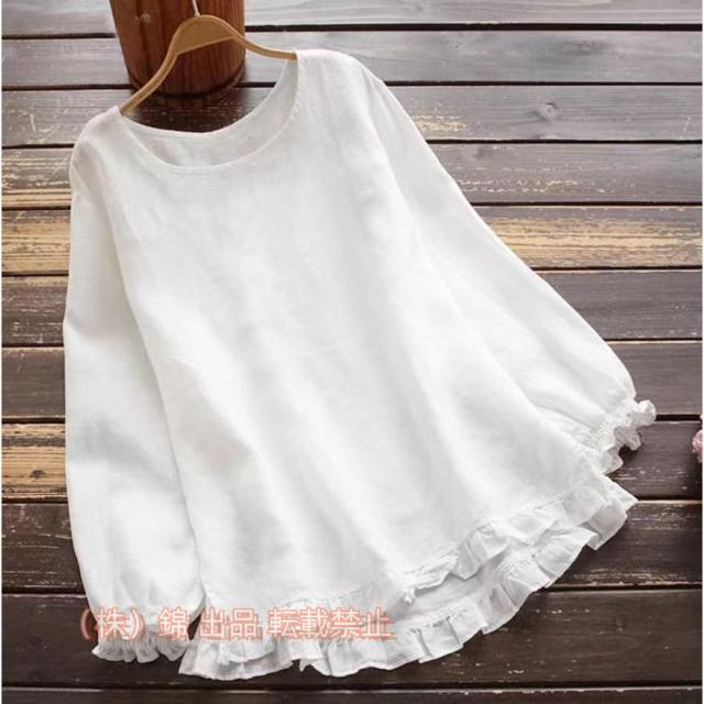 トップス シャツ ブラウス レディース シャツブラウス 無地 長袖 フリルネック 可愛い 綿麻 リネン コットンシャツ ホワイトシャツ 白シャツ ゆったり 体型カバー プルオーバー 無地 長袖シャツ 秋 綿麻シャツ 吸湿 速乾 大きいサイズ かわいい 薄手 秋新品