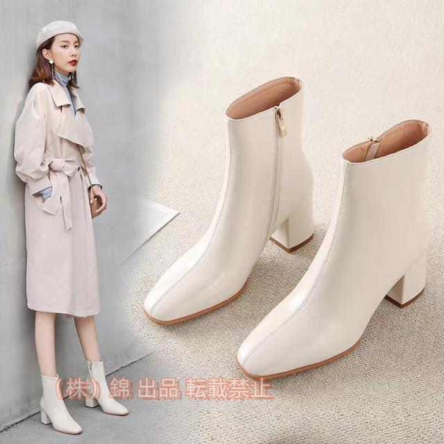 ブーツショートブーツレディース本革ブーツレザーブーツ美脚スクエアトゥ無地ハイヒールレディース株式会社錦太ヒールブーツ細見せおしゃれ痛くない