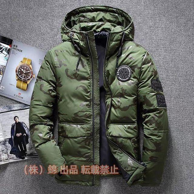 ダウンジャケットメンズ男性フード付きブルゾン2023おしゃれ長袖英語ダウンコートフェザージャケット冬服アウター株式会社錦厚く暖かいブラックM-3XL