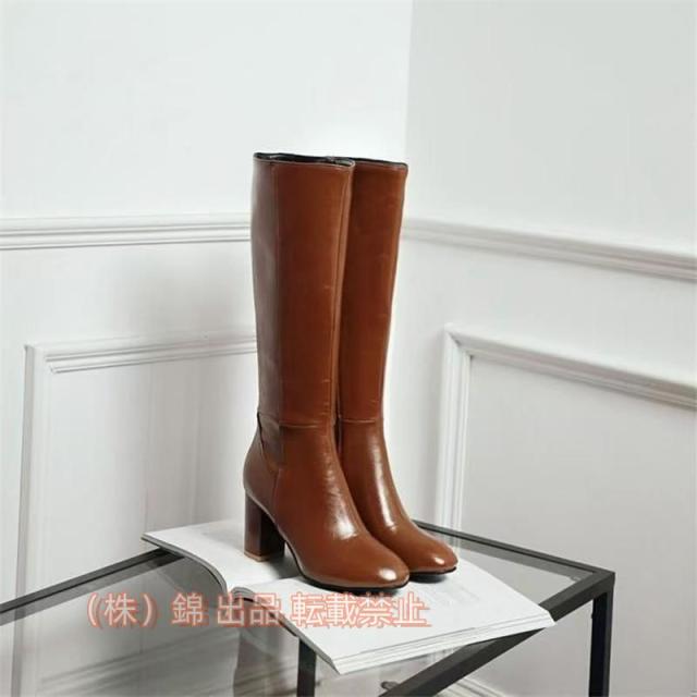 美脚ロングブーツレディース太ヒールジョッキーブーツレザー調おしゃれ秋ブーツ膝下ニーハイブーツスリム株式会社錦脚長冬ブーツチャンキーヒール7.5cm