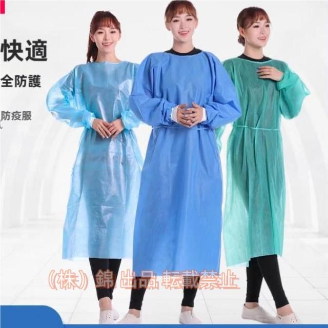 アイソレーション 不織布ガウン 防護服 使い捨て 不織布 防護 100枚セット 薄手 使い捨てエプロン 袖付き 長袖 株式会社錦フリーサイズ 男女兼用 作業着