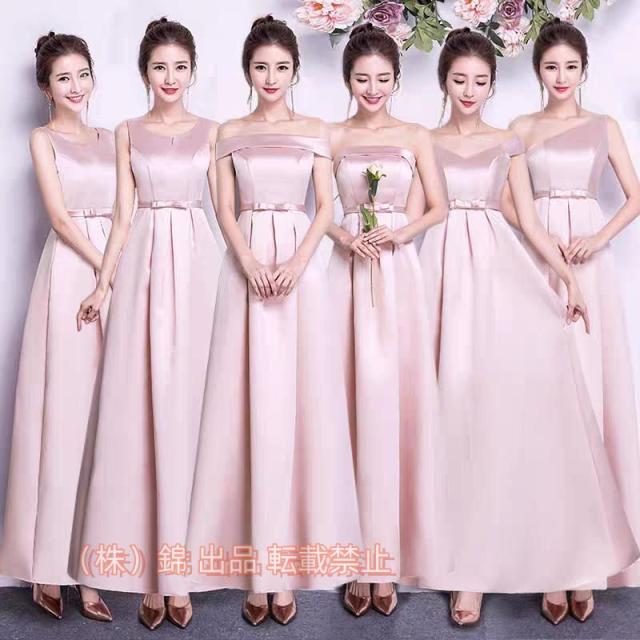 ドレス 披露宴ドレス お揃いドレス 膝丈ドレス ロングドレス 厚サテン ブライズメイドドレス 花嫁 ウェディングドレス 6タイプ ワンピース 20代