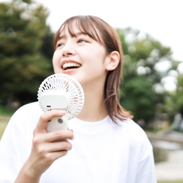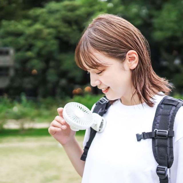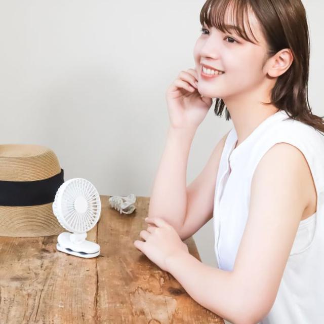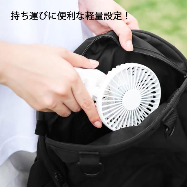 クリップ式だからリュックや鞄にも挟んで使えます。自立するのでデスクファンとしても◎