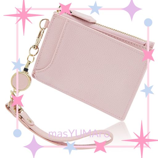 [GRAV] パスケース 定期入れ リール付き レディース かわいい カードケース 薄型 コインケース ピンク (キーチェーン ストラップ付き)