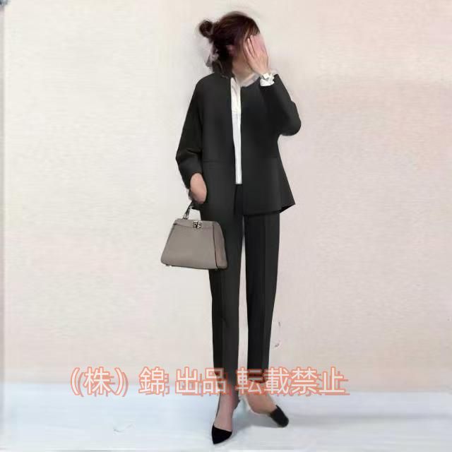 スーツレディースセット2点セット洗える着回しジャケットノーカラーフォーマル錦テーパードパンツ入学式スーツ母親パンツスーツ卒業式卒園式ママ